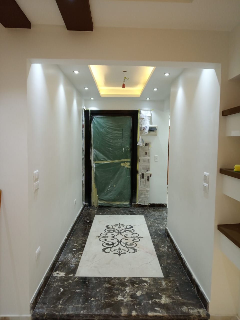 يجب القيام بأعمال المحارة والدهانات وتركيب الجبس بورد وتركيب الأبواب والنوافذ قبل تركيب البلاط.
